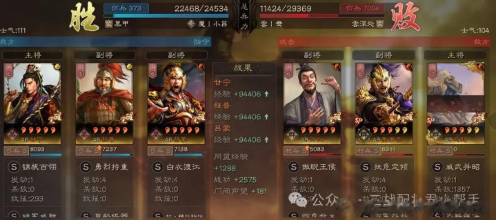 三战甘宁又一套打出“红名”的配置来啦!目前战场上甘宁的玩法大多数都以带草船借箭的“奶爸流”慷慨弓为主,本期的甘宁不当奶爸玩暴力,让他回归强势输出的玩法中!在遍地满红的航母区环境下,实战已经打出了100%胜率低损赢皇马的战绩,看到解烦卫就是无脑上,无视对面任何红度就是在白拿战功,皇马越多连穿横幅越猛!