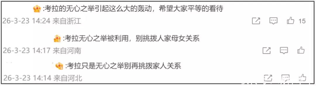 更令人觉得愤愤不平的是,钟丽缇这篇长文的评论区堪称“岁月静好”,前排热门的真实网友评论全部“消失”,充斥着“钟丽缇为人母的辛苦”、“原谅考拉无心之过”等评论。