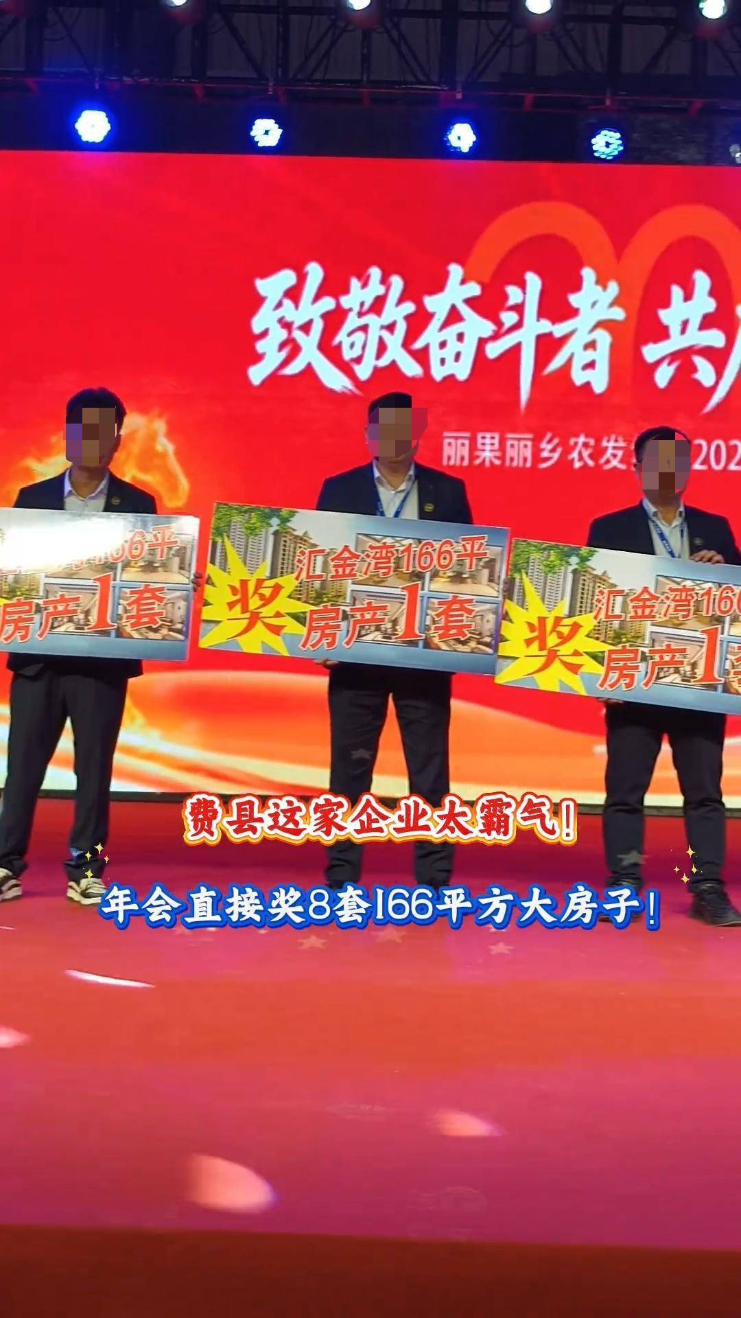 近日,有网友在社交平台发视频称,山东临沂一公司举办年会,现场发放大量百元钞票,让员工在限定时间内“数多少拿多少”,还有电视机、冰箱等奖品,8名高管各获赠一套166平方米的房产。不少网友评论表示羡慕。
