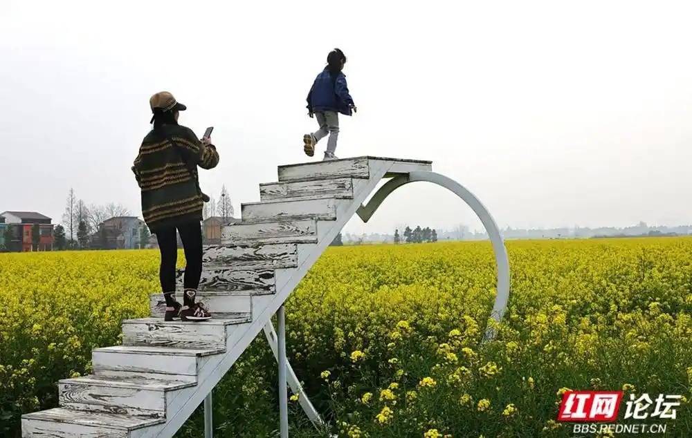 走进南县:跌进一场金色的田园美梦。(图源:王德璠)万亩油菜花如地毯般铺开,不仅有纯粹的金黄,更点缀着粉、紫色的多彩油菜花,在微风中摇曳生姿。错落有致的民居化身画布,风格迥异的巨幅涂鸦让古朴村落焕发摩登气息。艺术墙面与自然花海交相辉映,每一步都是风景。彩虹公路穿行其间,游客在花海中慢跑、骑行;创意十足的“天空之阶”和精致的木屋别墅,构筑起一处逃离喧嚣的世外桃源。